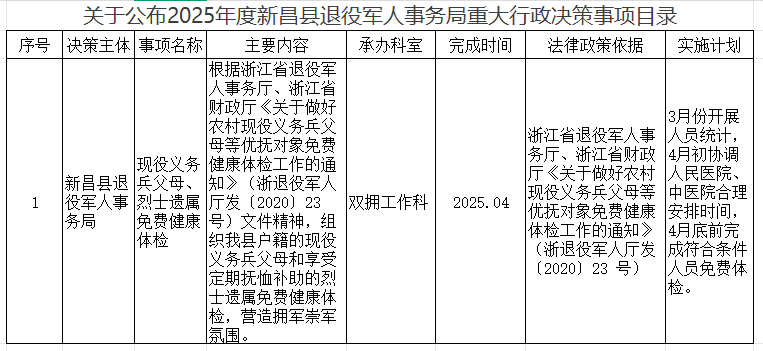 根據《重大行政決策程序暫行條例》(國務院令第713號)和《浙江省人民政府辦公廳關于印發浙江省重大行政決策事項目錄編制指引(試行)的通知》(浙政辦發〔2021〕3號)的相關規定,經黨組研究決定,公布我局2025年度重大行政決策事項,特此公告。