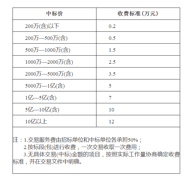 紹興市公共資源交易中心(含分中心)工程建設項目交易服務收費標準